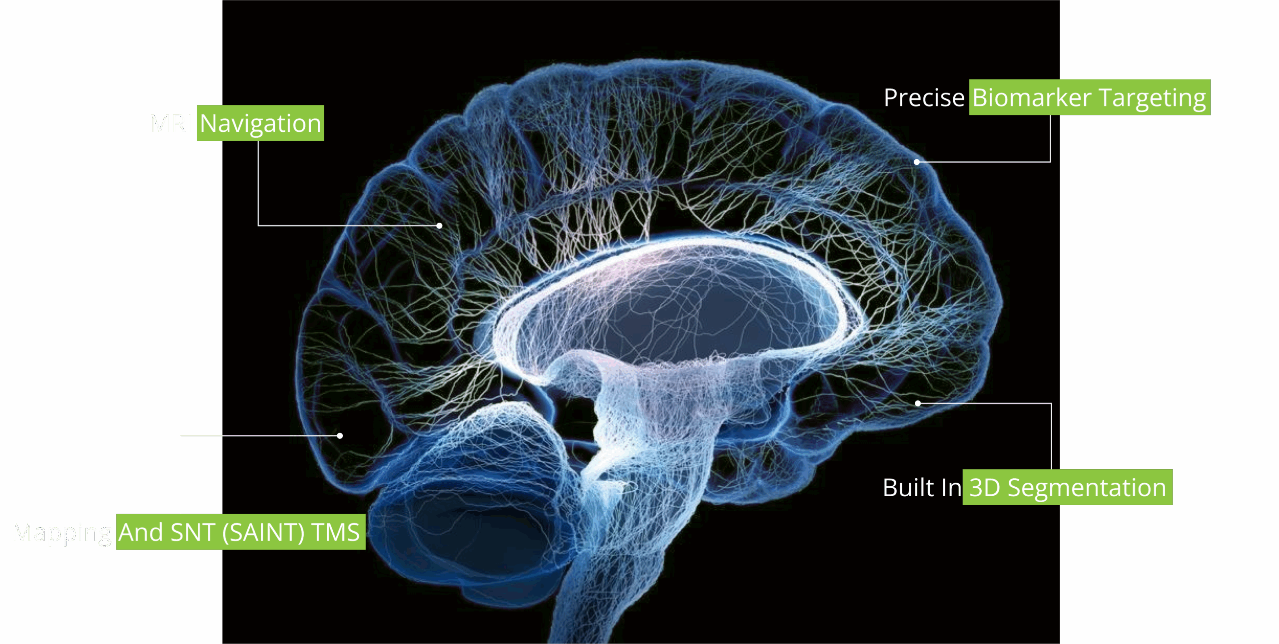 We use ultra-advanced 3D MRI-navigation to precisely target the exact anatomical regions found through diagnostic steps to apply advanced treatment modalities (rTMS…etc.)