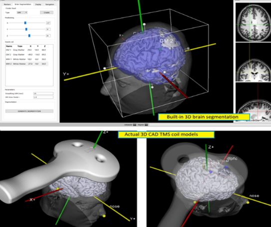 On close examination of the SNT research, it becomes clear that the treatment areas located using MRI and computer modeling were, on average, approximately 1 cm lateral to the F3 location. By locating the spot 1 cm lateral to F3 and using a coil that stimulates a large enough area we can therefore target the location that correlates to the average location of all patients in the SNT studies whose treatment target areas were located using the combination of MRI and computer modeling.