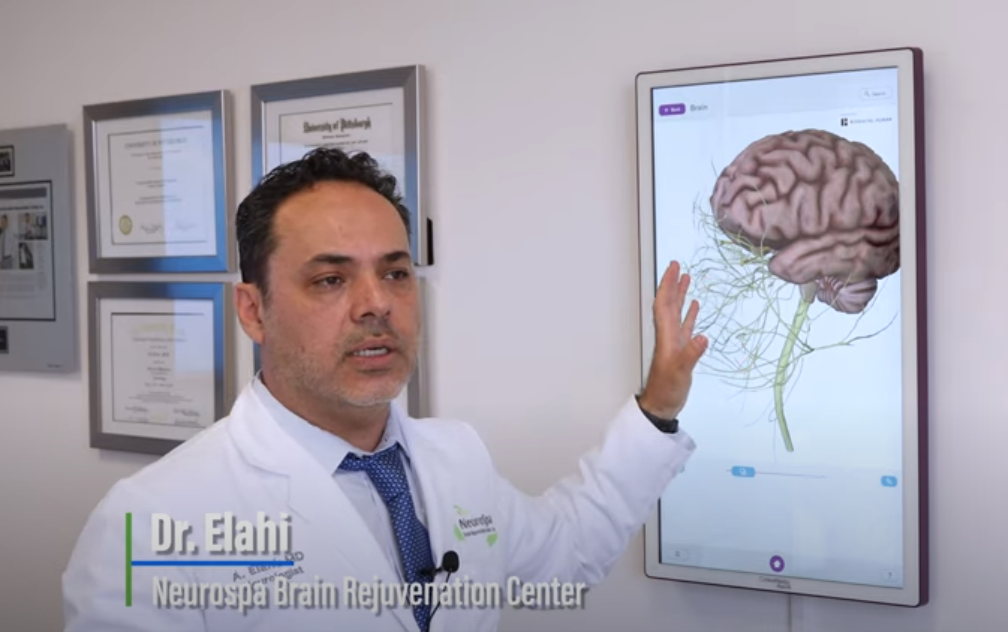 Dr. A. Elahi describes anatomical brain regions targeted for stimulation with rTMS (transcranial magnetic stimulation) for treatment of 30+ year-old female with severe traumatic brain injury (TBI), depression, and drug problems. Patient had marked improvement of mood, memory and headaches following treatment.